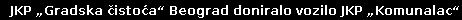 Ovom prilikom, JKP „Gradska čistoća“ Beograd je JKP „Komunalac“ doniralo vozilo za prikupljanje i transport komunalnog otpada zapremine 22 metra kubna, koje će omogućiti kvalitetnije, lakše i efikasnije obavljanje svakodnevnih komunalnih aktivnosti.